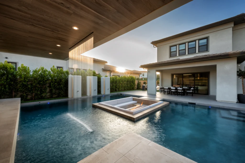 Architectural Digest featured a Foxterra project with a swim-up bar and outdoor kitchen designed to bring cooking, conversation, and poolside entertaining into one space.