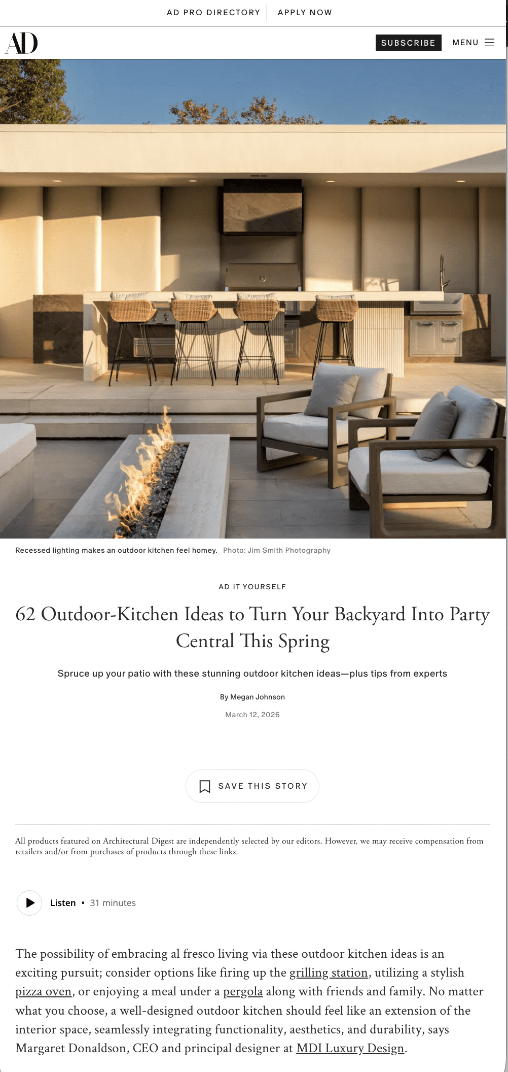 Foxterra Featured in Architectural Digest's "62 Outdoor Kitchen Ideas for Luxury Backyard Living"