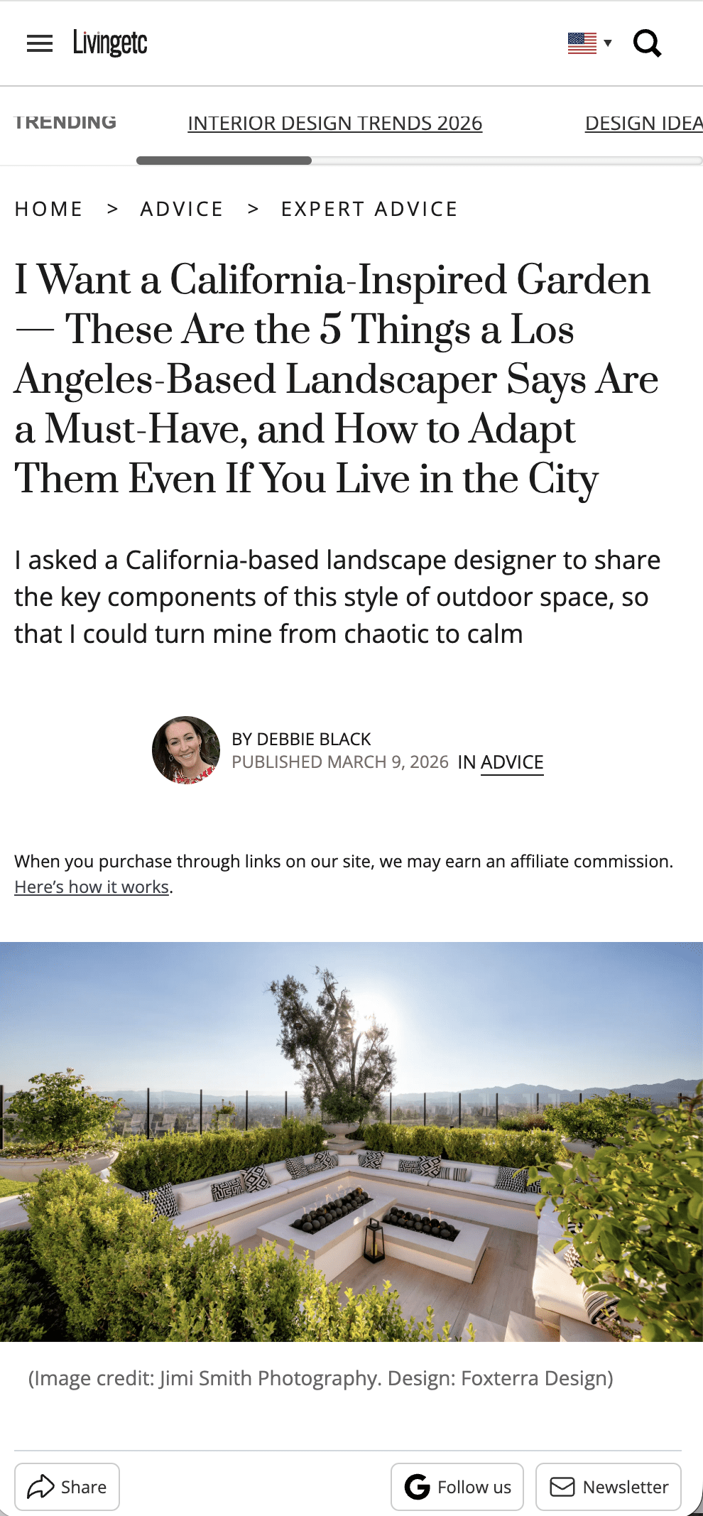 Foxterra was recently featured in Livingetc, where Nate Fox shared how to approach a California-inspired garden in a way that works in different settings.