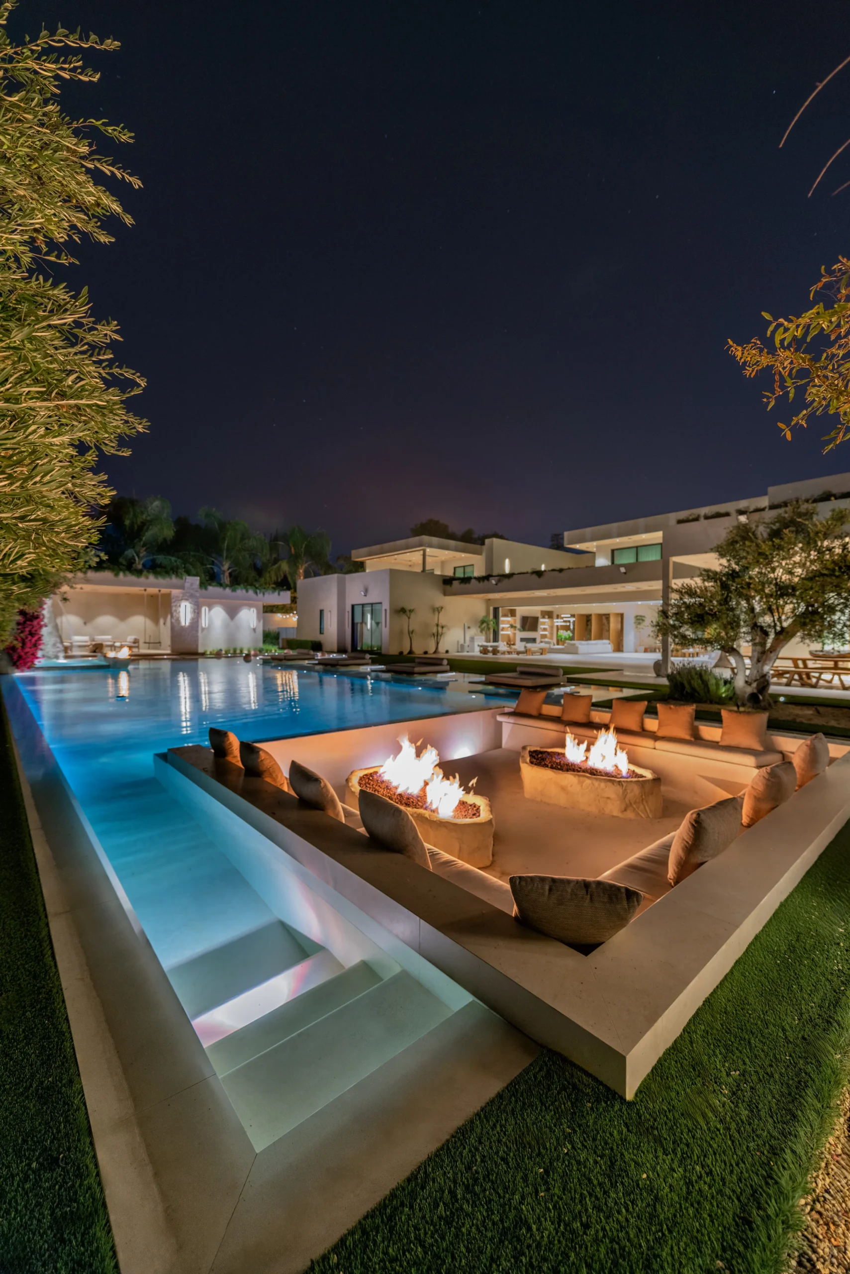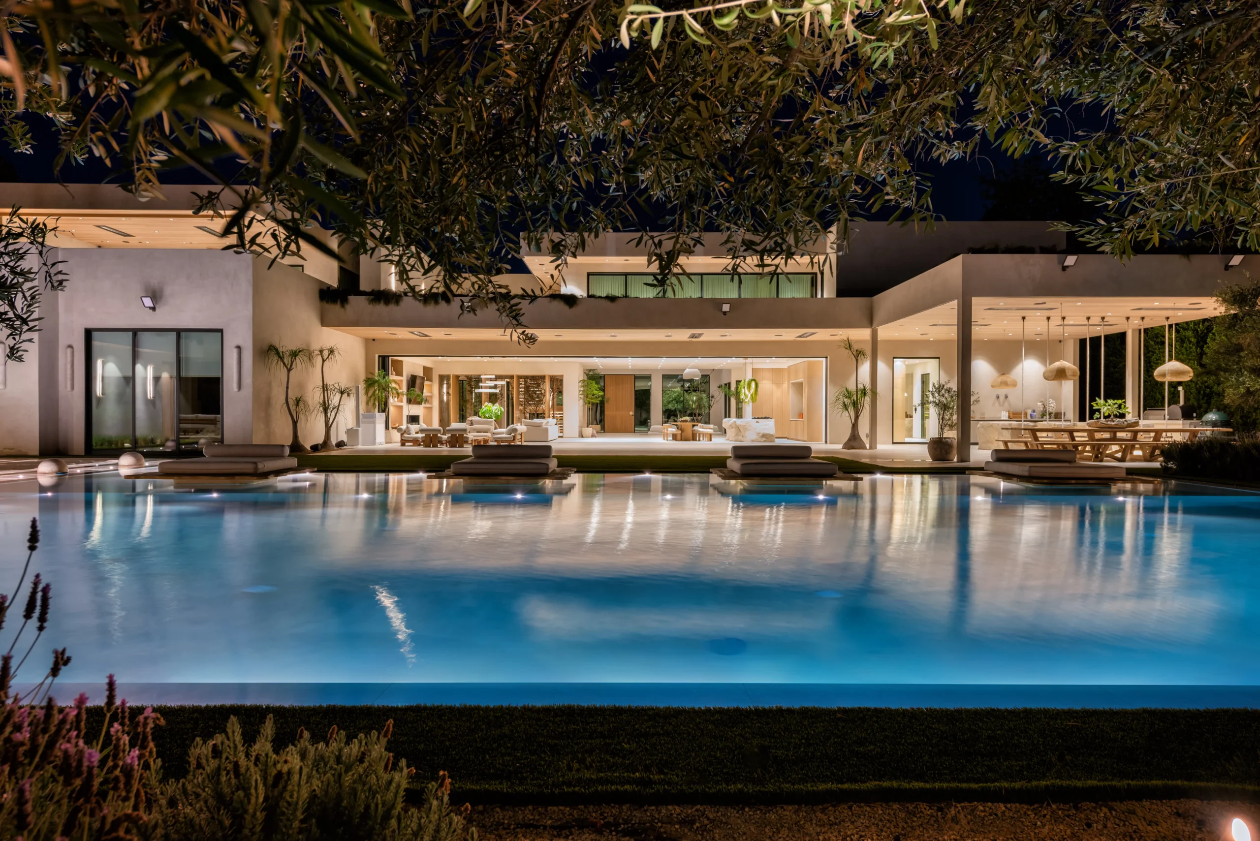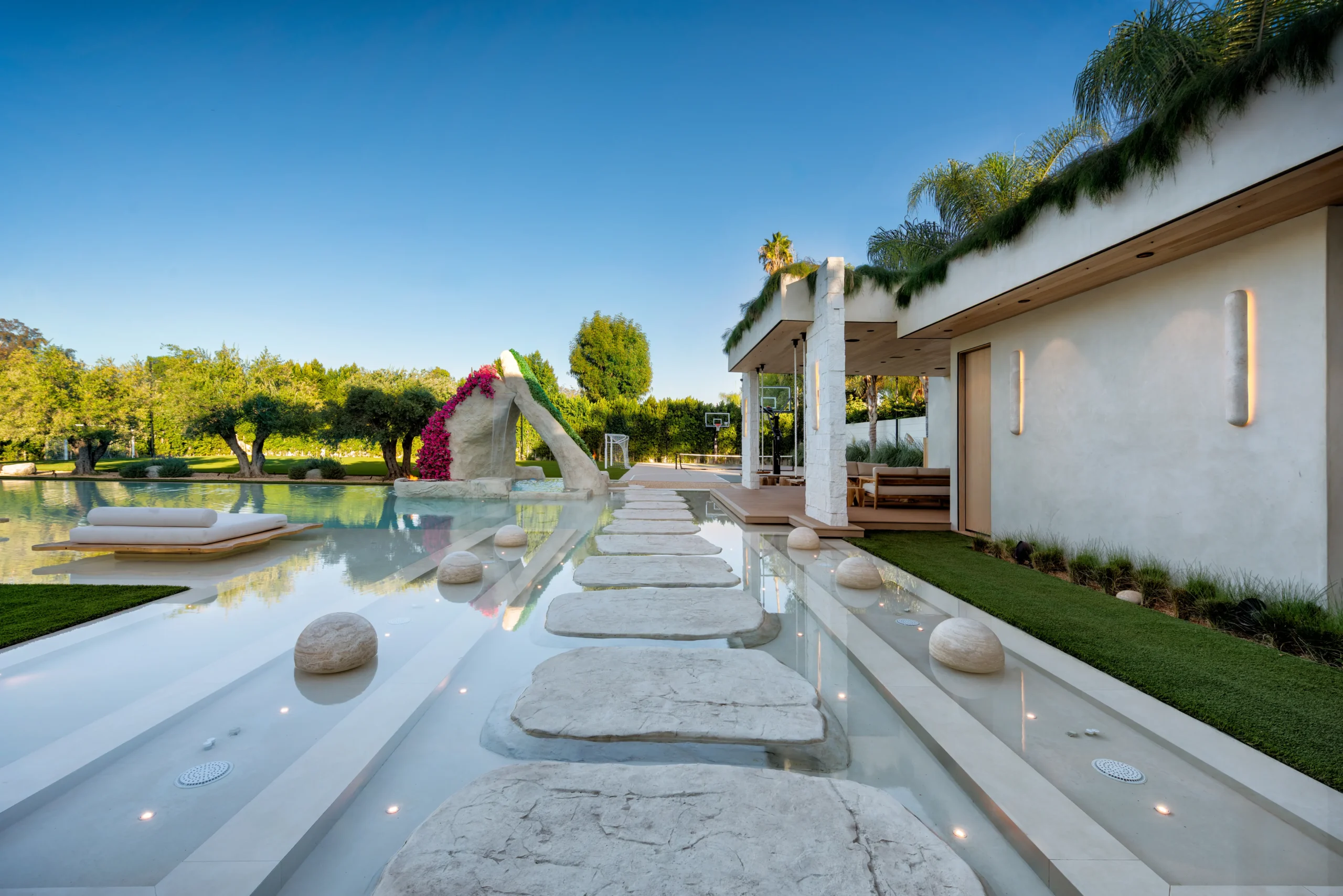 The pool is truly special. It has a zero-edge perimeter that comes right up to the grass. And it’s absolutely massive. The scale, plus the edging, adds understated drama to the whole yard.