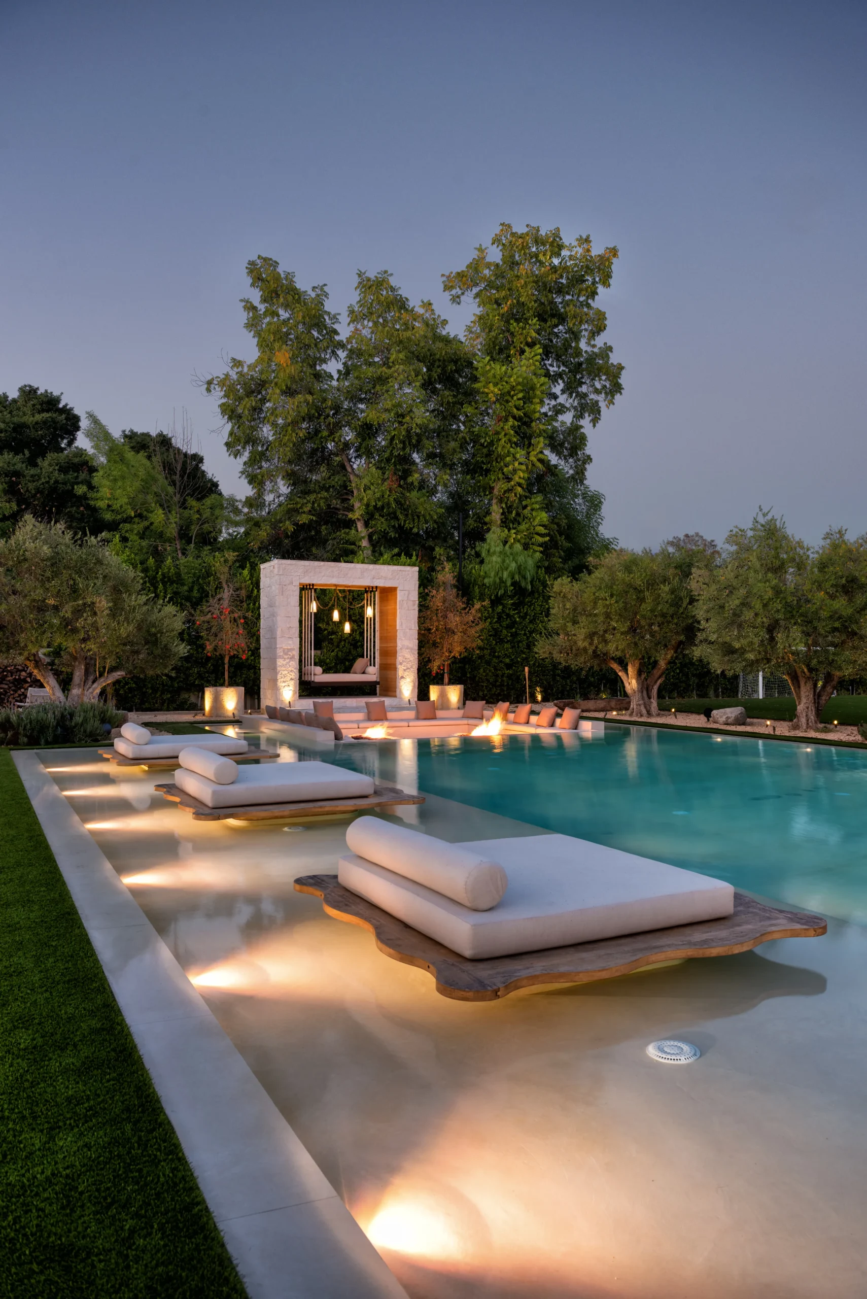 And each distinct area, from the floating daybeds to the cozy covered lounge area, gives the illusion that it’s hovering just above the surface.
