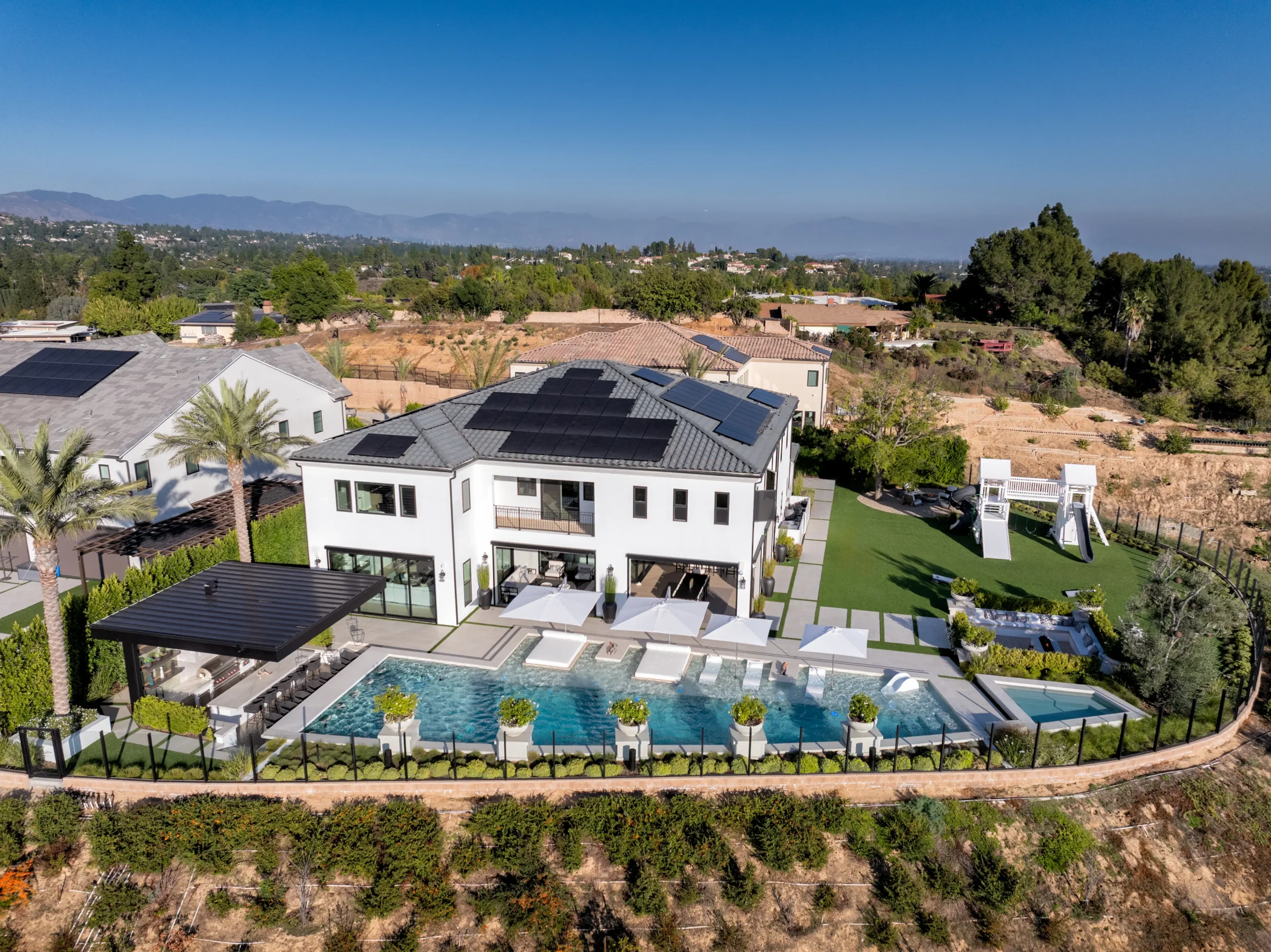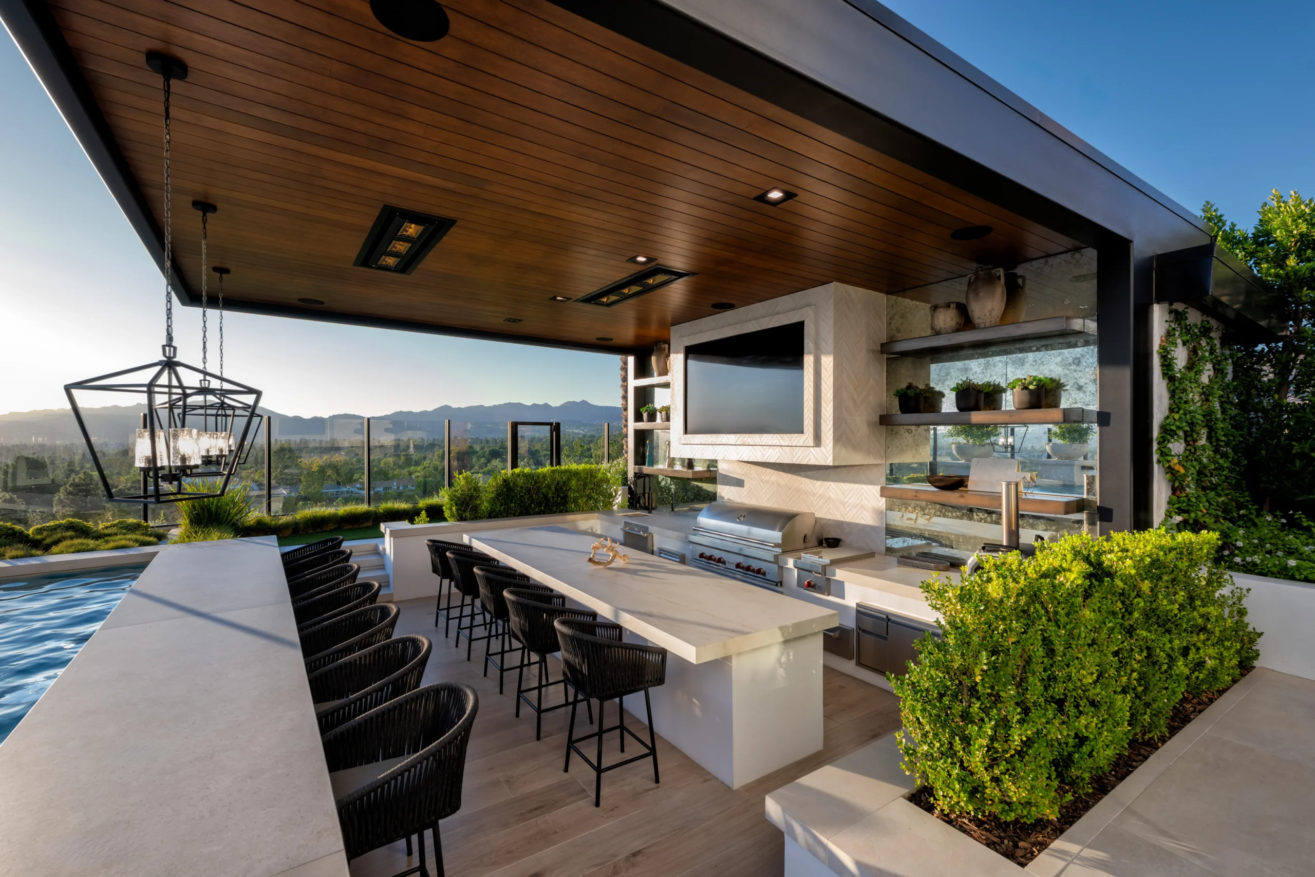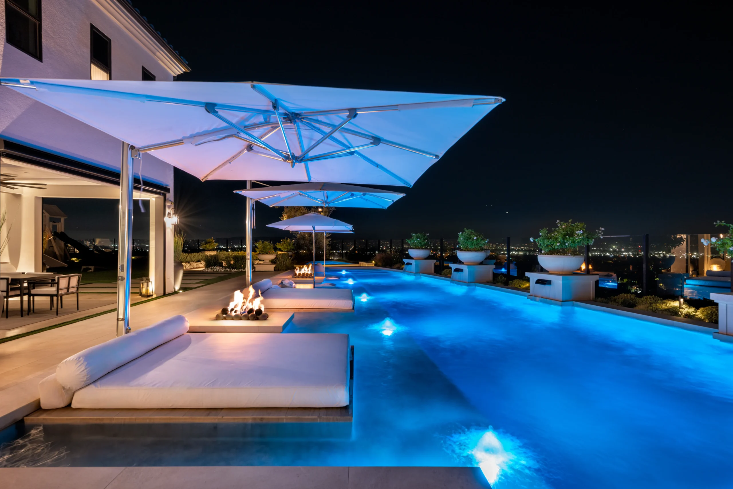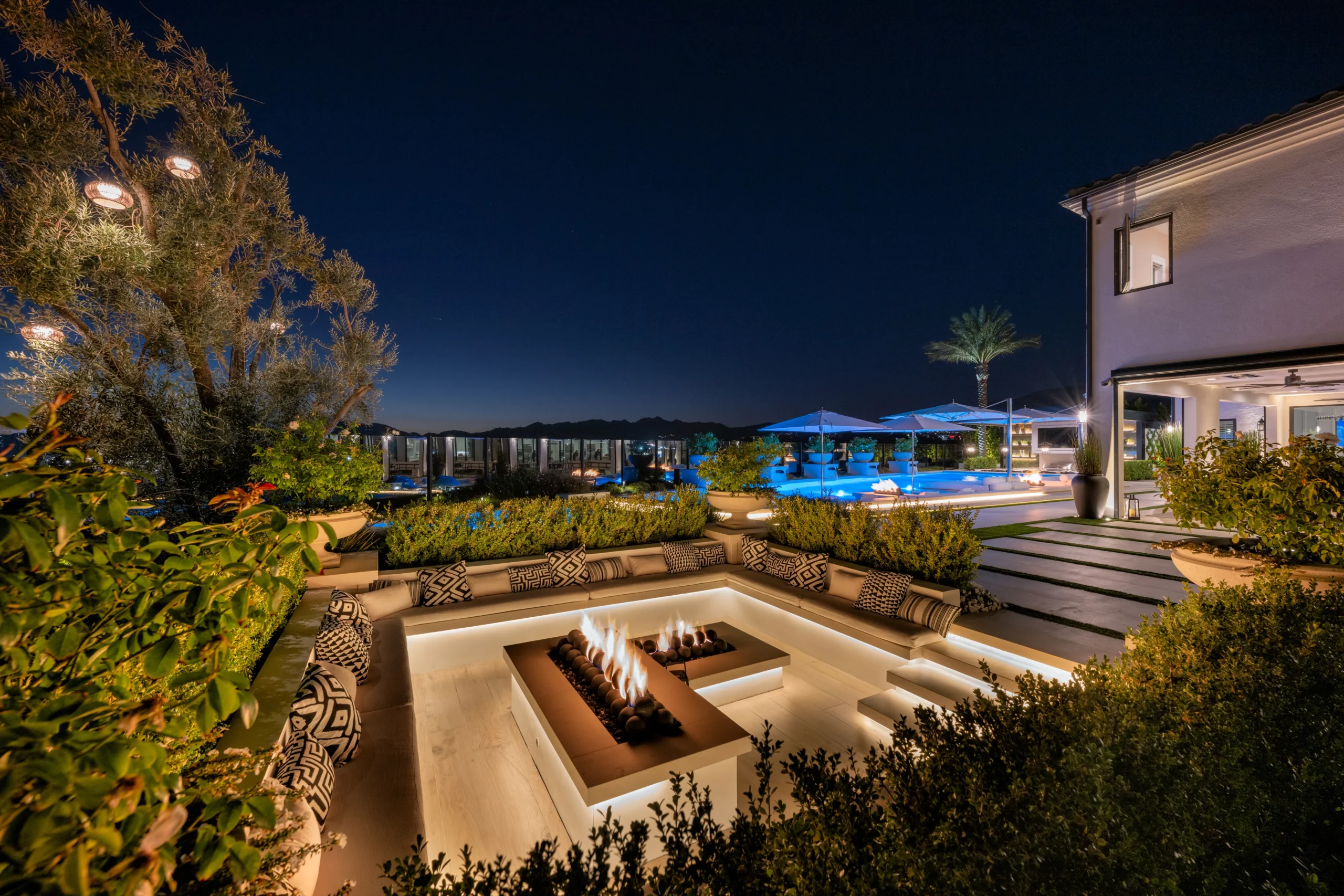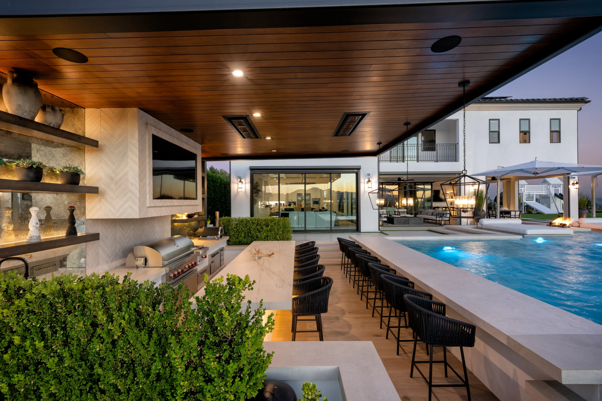 Baja Shelf, Covered Patio, Custom Lighting, Fire Feature, Fire Pit, Fire Table, Floating Daybeds, Lounge Area, Outdoor Dining Area, Outdoor Kitchen, Patio, Playset, Spa, Sunken Seating Area, Swing