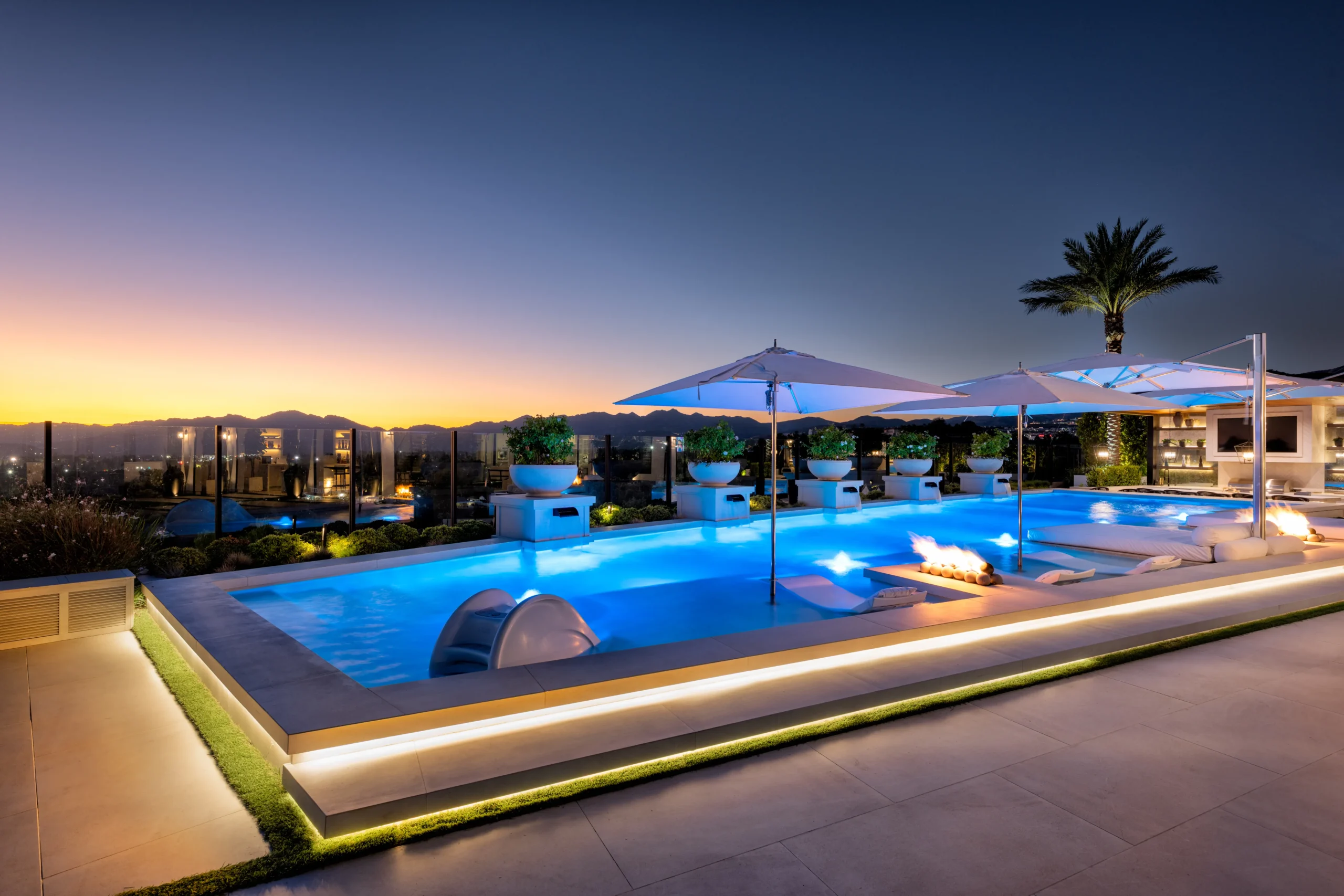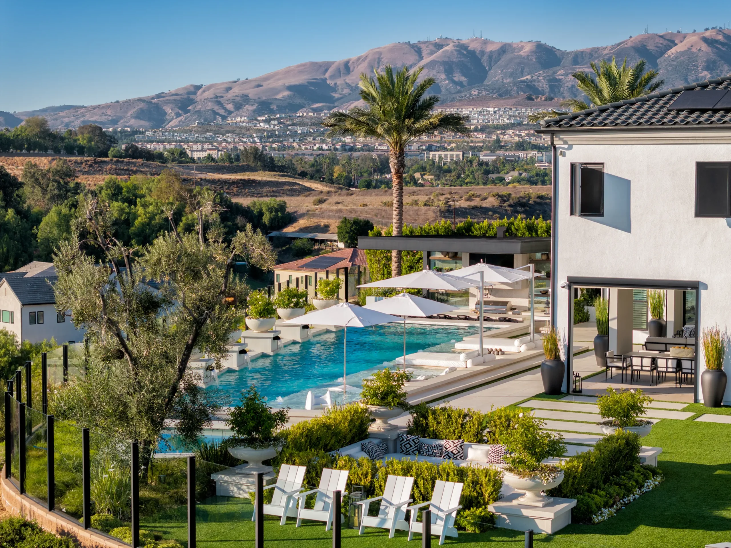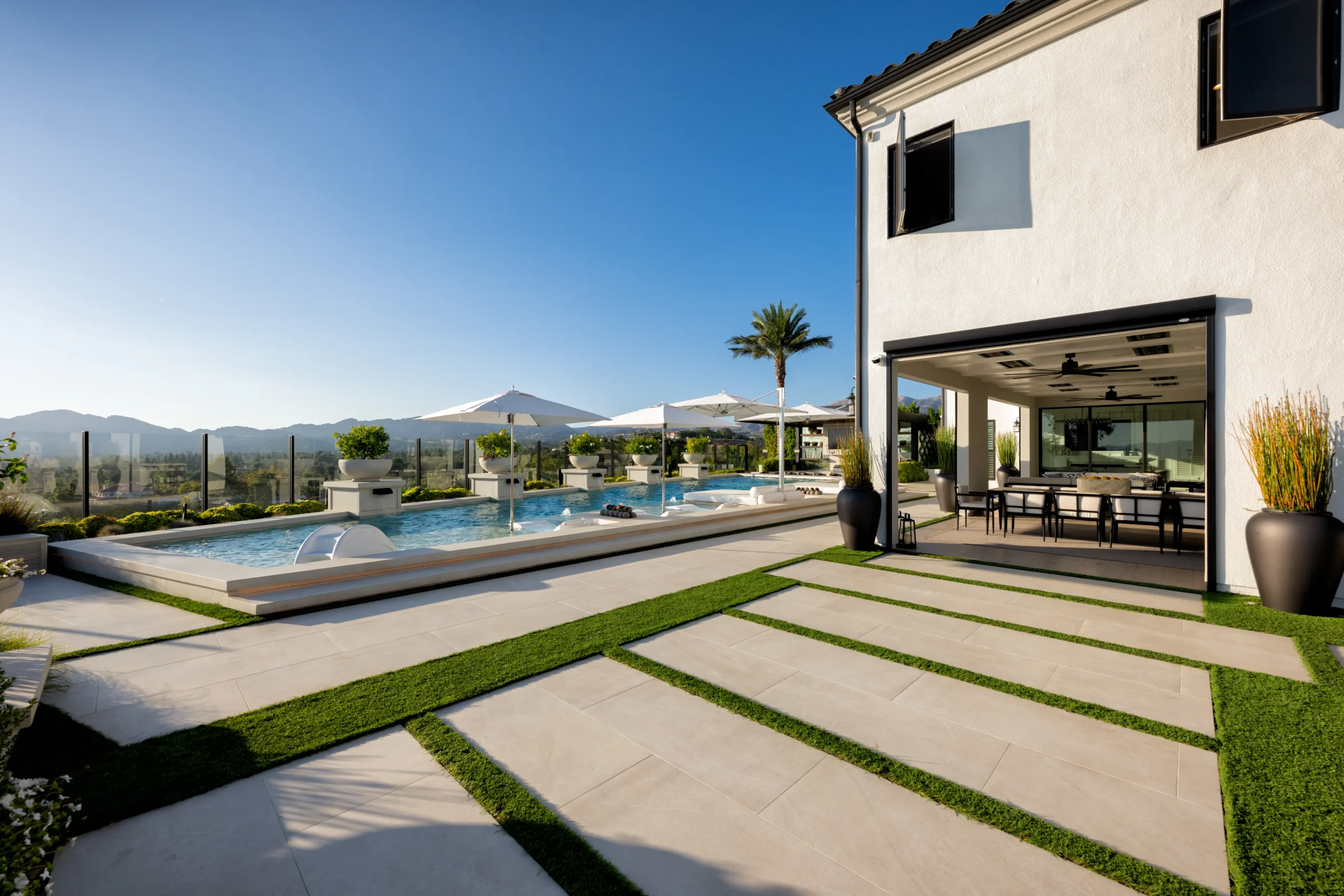 This backyard resort is the perfect blend of ultra-luxurious relaxing elements with kid-friendly fun and is perfect for our client's growing family.