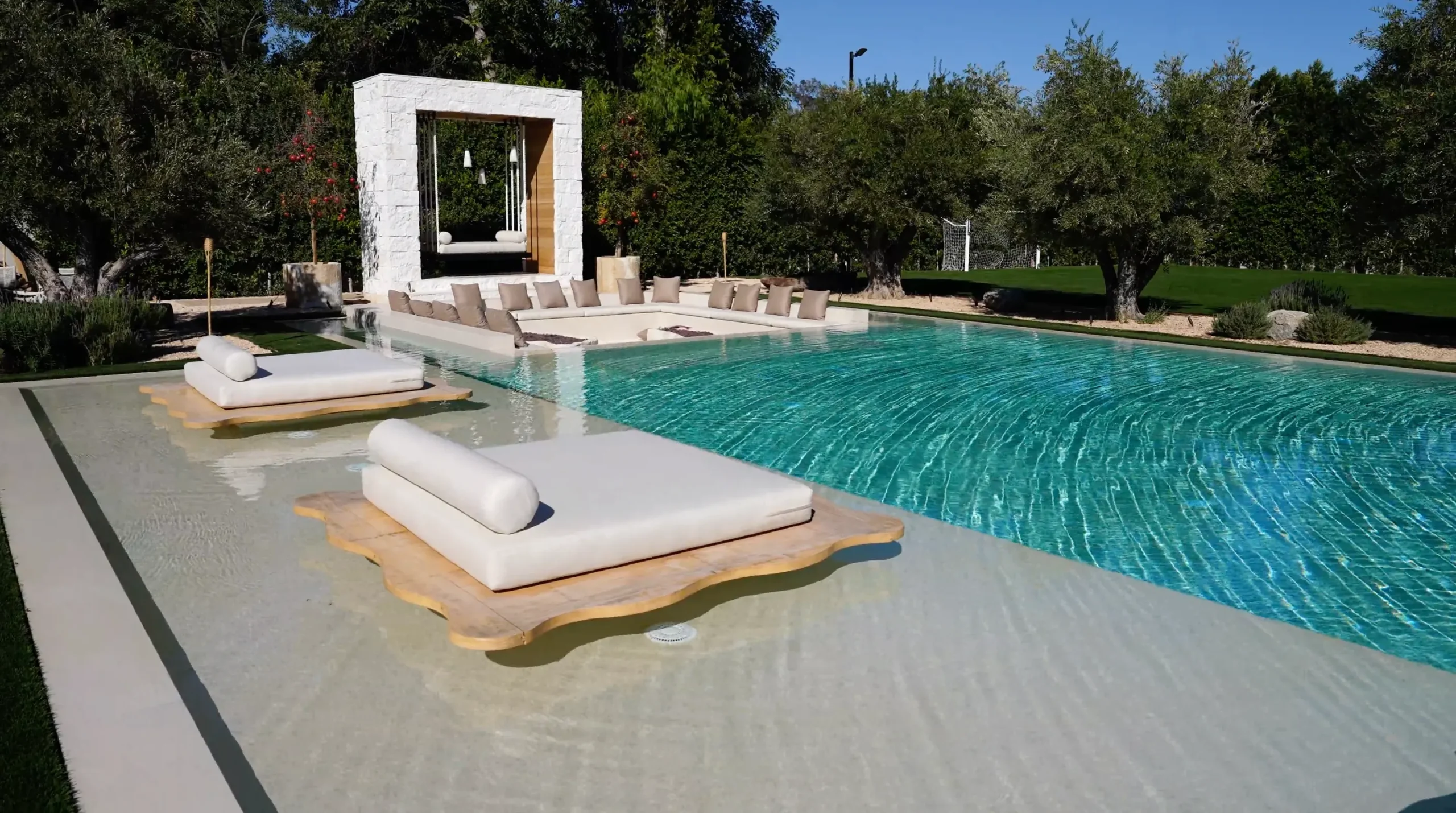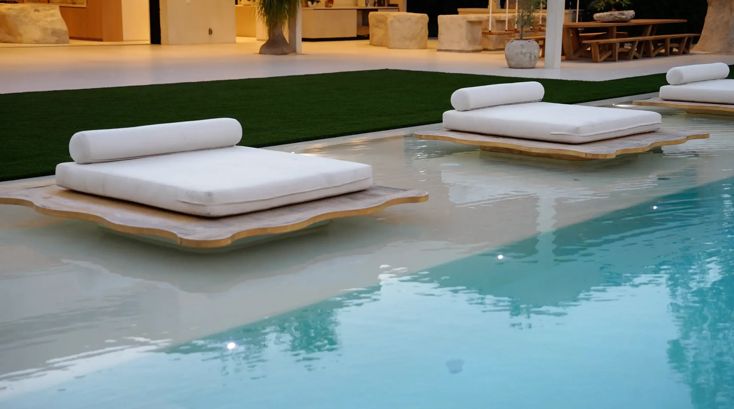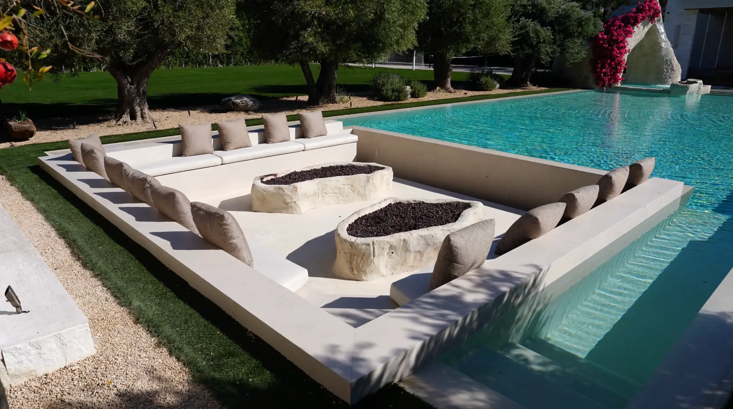 Water wraps around the entire space, creating movement and reflection everywhere you look. The walkways are designed to look like boulders emerging from the water, leading you through the yard in a way that feels sculptural and natural at the same time. This isn’t just a yard. It is an experience.