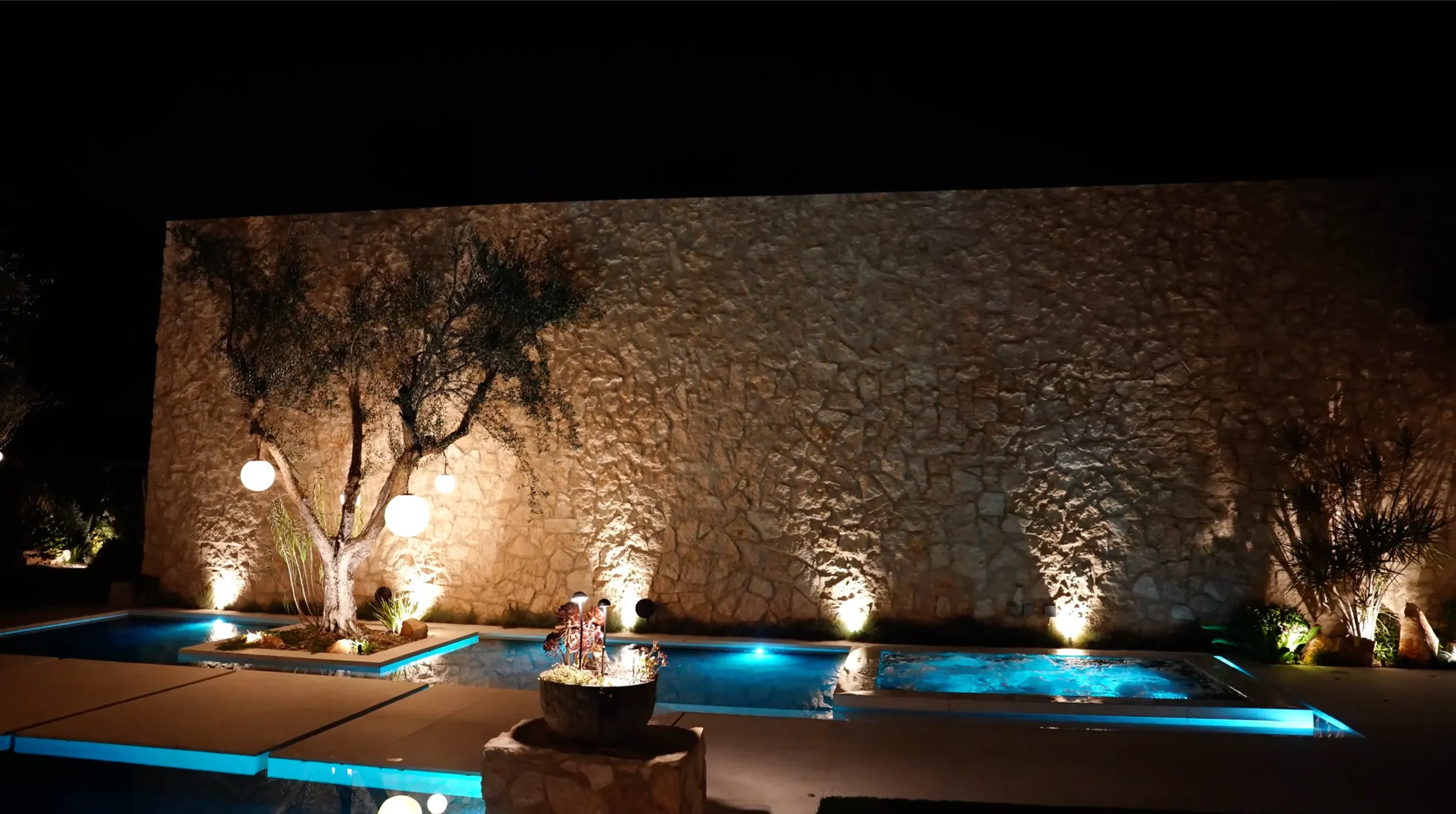 Baja Shelf, Basketball Court, Covered Patio, Custom Lighting, Fire Bowl, Fire Feature, Fire Pit, Fire Table, Floating Daybeds, Floating Walkway, Fountain, Jacuzzi, Lounge Area, Outdoor Dining Area, Outdoor Kitchen, Patio, Spa, Water Fountain