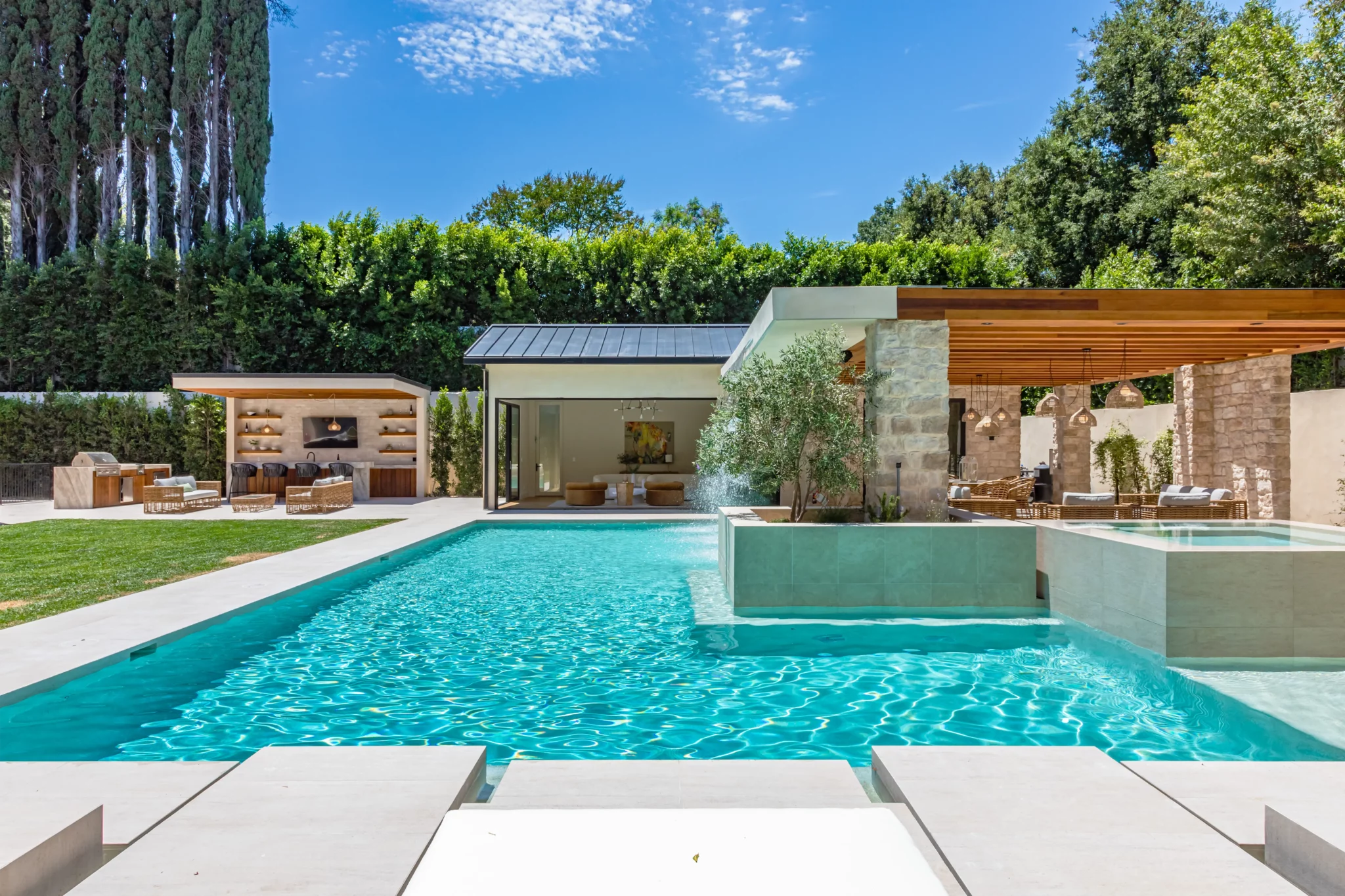 A: Yes. Modern outdoor design works well as a foundation for combining styles like coastal, tropical, or desert influences, as long as materials, proportions, and transitions are handled carefully.